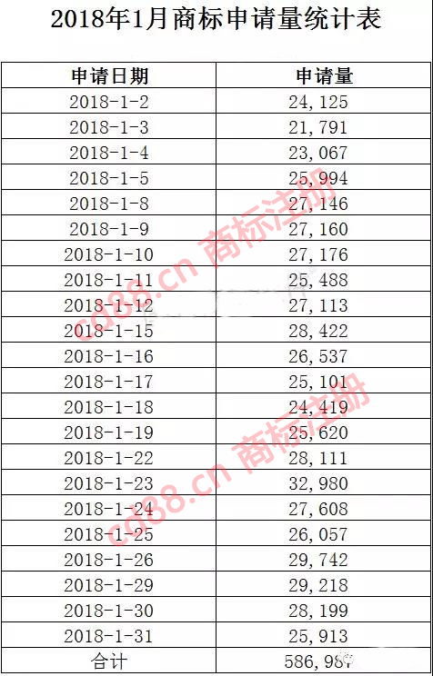 2018年1月份商标注册大数据—全国每日注册申请量统计