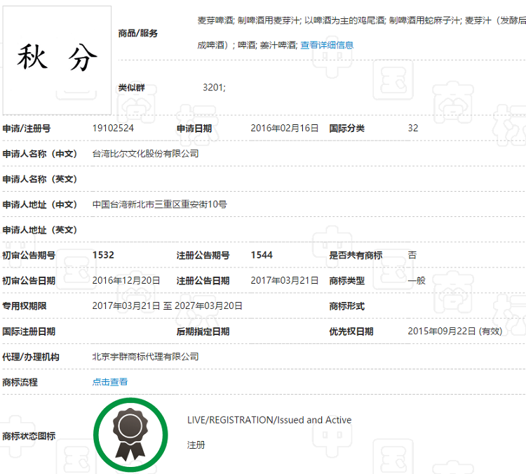 有意思的是,早在2007年,就已经有一家公司以“立秋”为商标进行了注册。