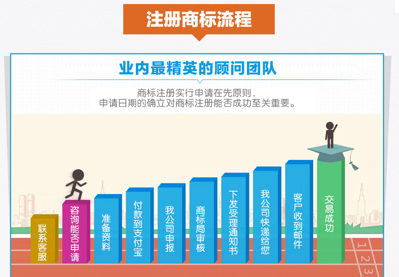 专业高效:一对一商标顾问专业服务!省去您的车马劳顿,更加省去您资料不合格的往返耗时;为抢占商标节约时间。