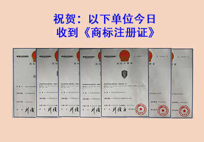 热烈祝贺:又一批企业拿到《商标注册证》