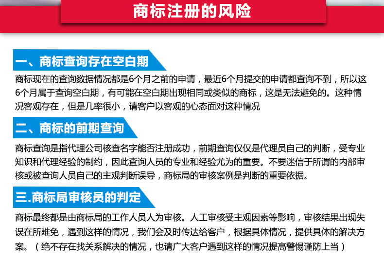 快速保障:快速注册可24小时取得受理号;3个月拿受理通知书;一年拿商标注册证;普通注册24小时进件;重要商标还提供担保注册、保证成功;加急注册、快速拿证!